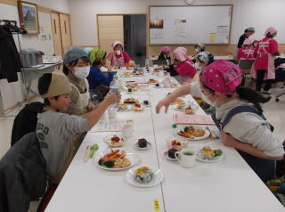 | クリスマスメニューの献立で、小学生11名、大人18名で賑やかに楽しく実習ができました |